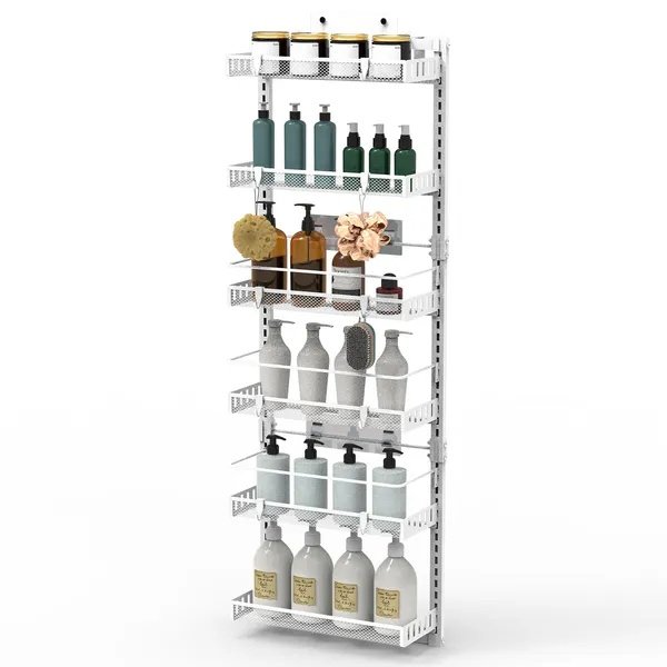 Over The Door Pantry Organizer 6-Tier Pantry Door Organizer Carbon Steel 110LBS Loading Easy Install Behind Door Storage For Closet Kitchen Bathroom 50.19’H 17.12’W 5.51’D